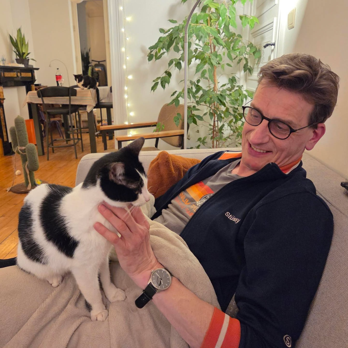 Zes jaar geleden wisten we zelf amper dat we een kat in huis hadden. We vulden eten bij, hoorden gekrab achter de kast, en af en toe geklapper van het kattenluik. Wipo* hield zich maanden schuil achter de keukenkast. Ondertussen is dit helemaal achter de rug. Ze komt koddig trippelend af bij geroep, we kunnen we ze vanop de keukenstoel en in de zetel aaien, maar als je durft bewegen spurt ze weg. Ze blijft enorm op haar hoede.