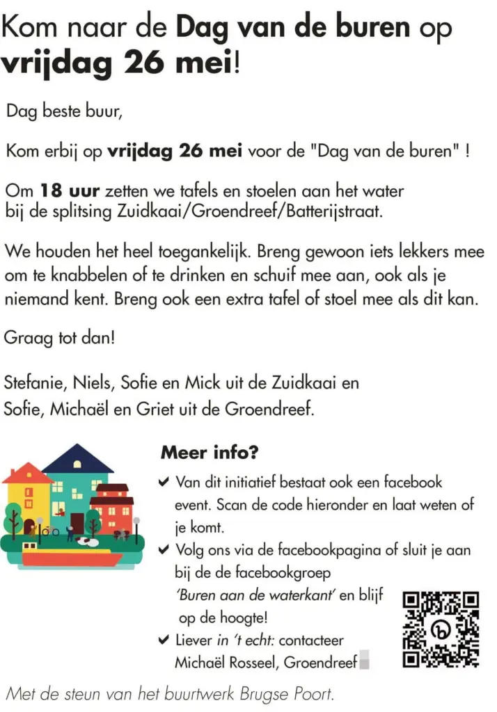Ik dacht bij mezelf “Awel, je moet ze nu toch overal scannen, ik ga zelf nu eens zelf een QR-code op de flyers naar aanleiding van de Dag van de Buren in Gent gebruiken.” Eentje die verwijst naar het facebook-event.